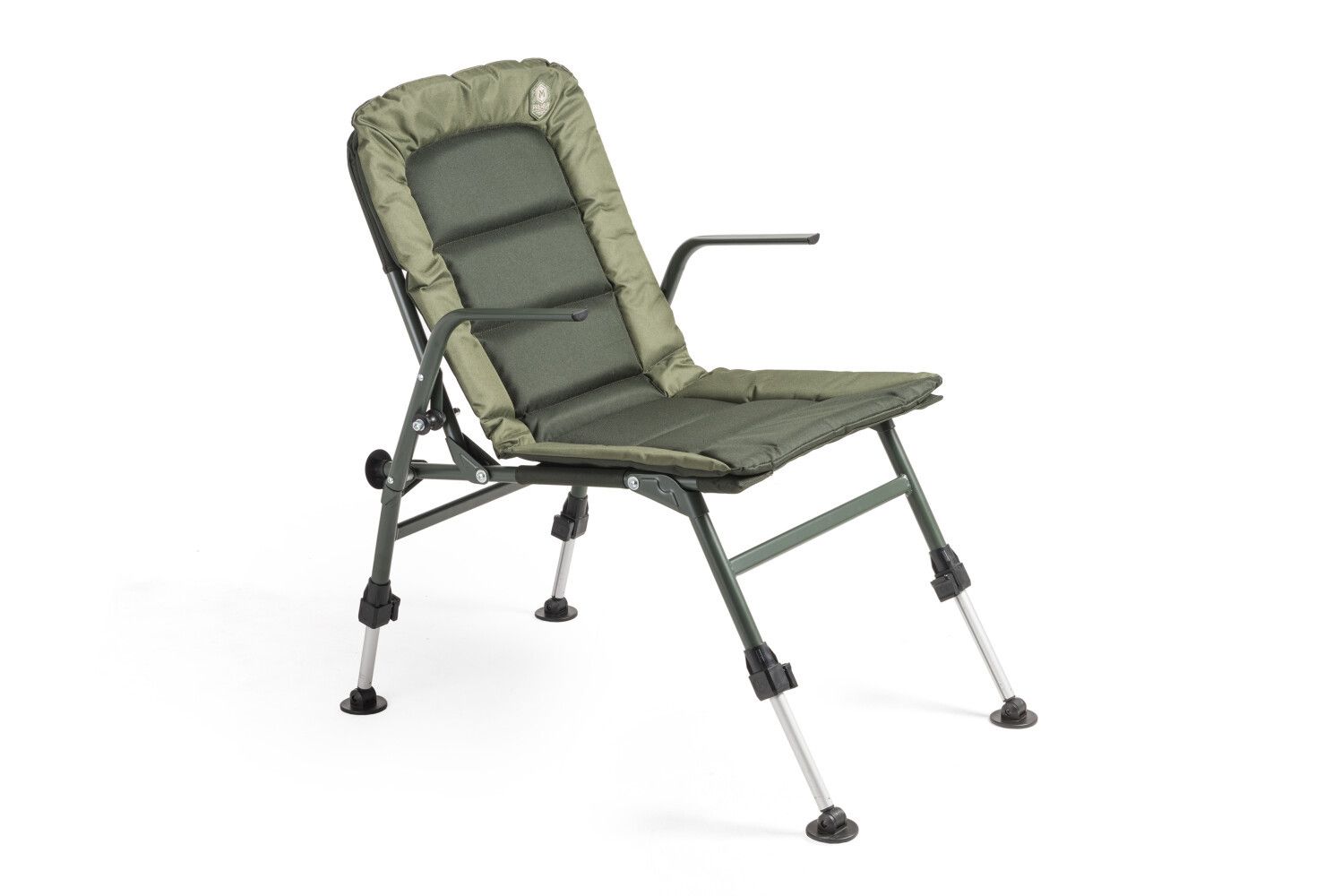 Veľmi pohodlné a ľahko prenosné kaprárske kresielko s mimoriadne stabilnou konštrukciou so štyrmi teleskopickými nohami.